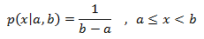 This distribution (also know as rectangular distribution) produces random numbers in a range [a,b) where all intervals of the same length within it are equally probable.